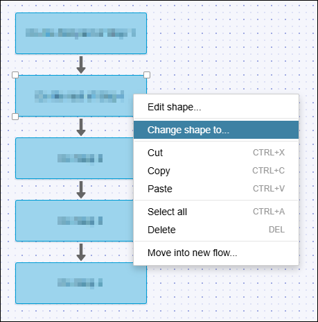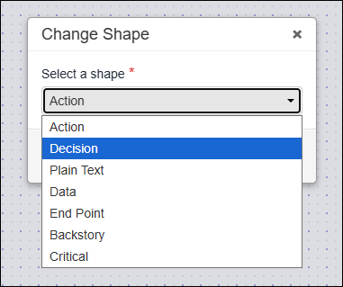 You can easily change a shape to a different shape. For example, maybe you used the wrong shape in a flow, or a change request necessitates changing a linear flow into a decision tree.