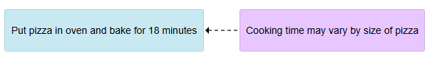 A flow will also contain arrows between the shapes. These can be solid lines that tell you where to go next in the flow: