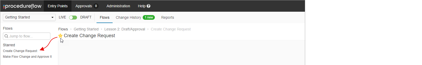 Have some flows that you visit regularly? Click the star to the left of a flow’s title to add the flow to your Starred list (aka your favourites or bookmarks) on the left side of your screen.